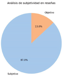 Los resultados referentes a la polaridad de las reseñas textuales (Figura 3) demuestran una dominancia casi absoluta de la connotación positiva (0.98), mientras que la polaridad negativa es residual (0.02). Complementariamente, el análisis de la subjetividad (Figura 4) evidencia que las reseñas son mayoritariamente subjetivas (0.87), expresando opiniones y experiencias personales, en contraste con un bajo nivel de objetividad (0.13), caracterizado por información fáctica.