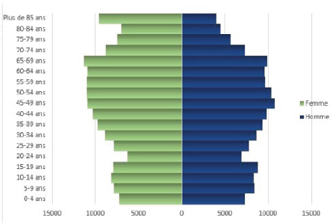 En effet, entre 2015 et 2021, la Corse accueille 20.310 résidents supplémentaires, soit une augmentation moyenne annuelle de 1%. Durant cette période, « le dynamisme démographique insulaire est exclusivement dû à l’apport migratoire, avec davantage d’arrivées de nouveaux habitants que de départs » (Insee, 2023: 1). Le fait est qu’en Corse, le solde naturel reste déficitaire avec davantage de décès que de naissances. Et, une forte concentration est observable dans les principales villes du littoral, puisque, « au 1er janvier 2021, 189.229 habitants résident dans les bassins de vie urbains d’Ajaccio et de Bastia », ce qui représente plus de la moitié (54%) de la population de l’île (Insee, 2023: 2). En outre, les données démographiques indiquent un vieillissement de la population locale, car les personnes ayant entre 60 et 74 ans ont vu leur part augmenter de 22 points et celles âgées de plus de 75 ans ont augmenté de 10 points durant cette même période (voir Tableau 1). Résultat : « 29% de la population insulaire est âgée de plus de 60 ans » (Collectivité de Corse, 2021: 10).