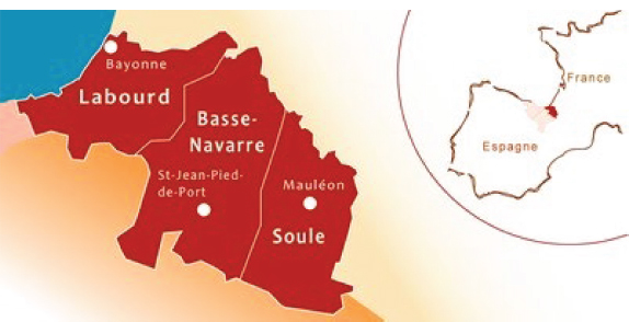 - Le Pays Basque hexagonal est situé entre l’Adour (au nord) et les Pyrénées (au sud). Le paysage y est d’une grande diversité, comprenant montagnes, vallées, plaines et littoraux. Le climat y est pluvieux et humide toute l’année, ce qui donne aux rivières un fort débit. « Les rivières sont courtes et, du fait de l’affaiblissement du courant, elles composent des vallées étendues et profondes. Dans ces vallées aux terres fertiles, des villages se sont installés » (Institut Culturel Basque, 2025).